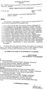 رنگاریڈی کلکٹر ہریش، میڑچل کلکٹر اموئے کمار، یادادری کلکٹر ونے کرشنا ریڈی، نرمل کلکٹر ورون ریڈی، حیدرآباد کے کمشنر پولیس سی وی آنند، ورنگل کے سی پی رنگناتھ، نظام آباد سی پی وی۔ ستیہ نارائنا ٹرانسپورٹ سکریٹری، کمرشل ٹیکس کمشنر ٹی کے سری دیوی، ایکسائز ڈائرکٹر مشرف علی کے ساتھ سنگاریڈی ایس پی رمنا کمار، کاماریڈی ایس پی سری نواس ریڈی اور دوسرے بھی شامل ہیں۔