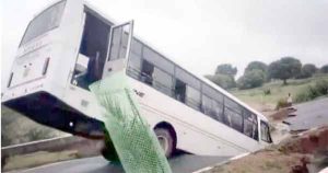 محبوب نگر :بڑا حادثہ ٹل گیا ،بس سڑک میں دھنس گئی