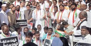 قومی ضمانت روزگار اسکیم سے گاندھی جی کا نام ہٹادینے کے خلاف صدر تلنگانہ پردیش کانگریس کمیٹی مہیش کمار گوڑ کی قیادت میں کانگریس نے پیراڈائیز سکندرآباد ایم جی روڈ پر مجسمہ گاندھی جی کے پاس احتجاجی دھرنا منظم کیا۔ اس احتجاج میں ریاستی وزراء ڈی سریدھر بابو، محمد اظہرالدین، جے کرشناراؤ، جی ویویک، وی سری ہری کے علاوہ سینئر قائدین میں وی ہنمنت راؤ، ایس محمد واجد حسین و دیگر نے شرکت کی۔ اس موقع پر خطاب میں مہیش کمار گوڑ نے کہا کہ گاندھی جی خاندان کا نام سنتے ہی بی جے پی قائدین کی راتوں کی نیند اڑ جارہی ہے۔ گوڈسے کی پوجا کرنے والے بی جے پی قائدین نے دیہی روزگار سے متعلق منریگا اسکیم سے بابائے قوم مہاتما گاندھی کے نام کو نکال دیا ہے جس کی کانگریس سخت مذمت کرتی ہے۔ کانگریس صدر ملکارجن کھرگے کی ہدایت پر حیدرآباد کے بشمول تلنگانہ کے تمام اضلاع اور ملک گیر سطح پر کانگریس پارٹی مرکزی حکومت کے خلاف احتجاج کرکے اپنے فیصلے سے دستبردار ہوجانے اور اسکیم کو دوبارہ گاندھی جی کے نام سے موسوم کرنے کا مطالبہ کر رہی ہے۔ صدر تلنگانہ پردیش کانگریس نے کہا کہ کانگریس کی زیرقیادت یو پی اے حکومت میں دیہی مزدوروں کو سال میں کم از کم 100 دن روزگار کی ضمانت کیلئے اس اسکیم کو متعارف کرایا گیا تھا۔ 2014ء میں اقتدار پانے والی بی جے پی حکومت نے اس اسکیم کے فنڈز میں پہلے کٹوتی کردی اور اب اس اسکیم سے گاندھی جی کا نام ہٹاتے ہوئے غیرمعلنہ طور پر دستور کو تبدیل کرنے کی منظم سازش کررہی ہے جس کی کانگرسی سخت مذمت کرتی ہے۔ مہیش کمار گوڑ نے کہا کہ سونیا گاندھی اور راہول گا ندھی کے خلاف سیاسی انتقام لے کر جھوٹے مقدمات درج کئے جارہے ہیں اور مختلف طریقوں سے حق کی آواز دبانے ہراساں و پریشان کیا جارہا ہے جس سے کانگریس ہرگز خوفزدہ نہیں ہوگی اور مرکزی حکومت کی ناکامیوں کو عوام کے سامنے بے نقاب کرتی رہے گی۔ مہیش کمار گوڑ نے کہا کہ بی جے پی بالخصوص وزیراعظم نریندر مودی و مرکزی وزیرداخلہ امیت شاہ ملک میں فرقہ پرستی اور نفرت کی سیاست کی حوصلہ افزائی کررہے ہیں سماج کو بانٹا جارہا ہے جس کی پارٹی مذمت کرتی ہے ۔